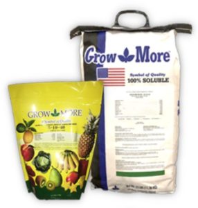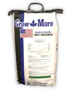 Grow More Es un fertilizante 100% soluble en agua que puede ser utilizado de manera foliar o al suelo para corregir deficiencias nutricionales en cultivos agrícolas. Está indicado para aquellos casos en los cuales la fertilización al suelo ha sido deficiente o bien como complemento a la misma, también cuando existe falta de asimilación de nutrientes por condiciones climáticas desfavorables (sequía, o exceso de lluvia).